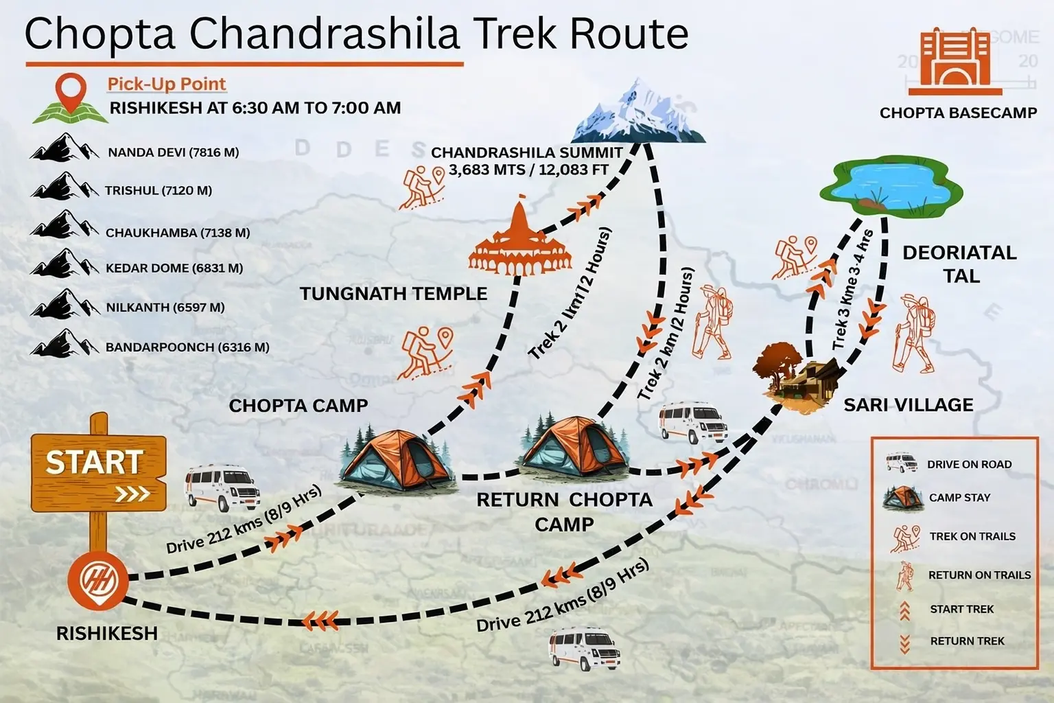 Day 1: Pickup from Rishikesh – Drive to Chopta Camp